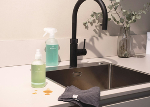Удаление пятен: очистка столешниц и фартуков от строительных смесей.